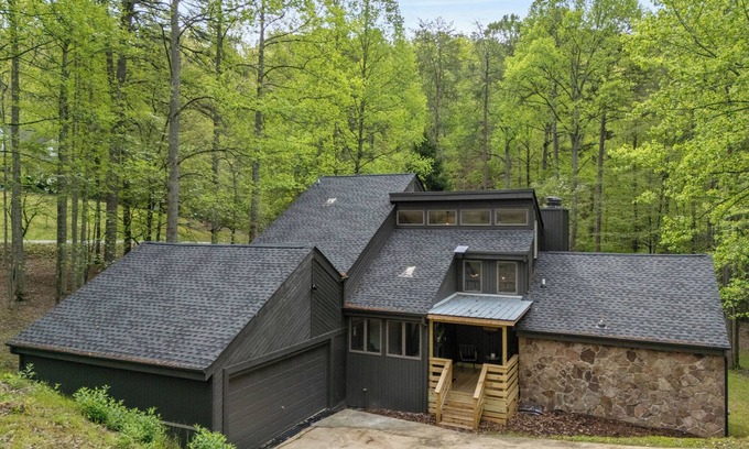 Welcome to the beautiful Evergreen Chalet. This unique chalet hosts 12 guests with 5 bedrooms, game room, bar, and plenty of living area to spread out in! Located in a quiet mountain neighborhood surrounded by trees. Designed with unique, modern, mountain decor. Just minutes from downtown Murphy, restaurants, stores, and attractions. Whether you're looking for a family getaway, retreat with friends, or a couples vacation..this is the perfect place!
