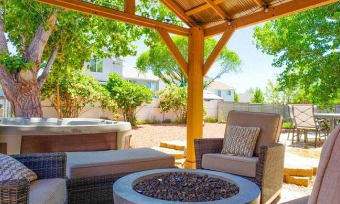 You and your other guests will be pampered in this property, with its new high end designer furniture, full exclusive bedroom sets, wall decor, fully stocked kitchen, ample parking, extremely quiet neighborhood, large and fully fenced backyard and other luxury accents. The property has new top tier designer mattresses to ensure the highest quality sleep. Enjoy cable TV on one of two new large inch Ultra High Definition TVs or tune in to Netflix or Amazon offered at no charge to guests. There is a tub for a soak after a day biking or skiing the slopes. The property offers a full 2 car garage as well as additional driveway parking (street parking is also available). Copious storage abounds, with full sized closets, and laundry closet with new washer/dryer suite. Don't compromise with older out of the way properties without backyards for you and your pets, accessible outdoor spaces, etc. promising to be the real thing. Moderate RV and towable also accepted at this property in large driveway, stall adjacent to the garage or on the street.