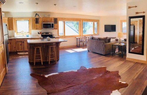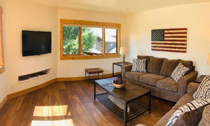 Bright and charming residence in Bigfork Station right on Electric Avenue! Enjoy this top-floor corner unit facing Bigfork Bay in the heart of downtown. 1BR/1BA (king and queen air mattresses available) with an open floor plan and conveniently located in the heart of historic Bigfork. Walk downstairs for coffee and ice cream, see a show at the Playhouse next door, walk out back to the dock in Bigfork Bay and get on Flathead Lake, or walk the Wild Mile trail along the Swan River around the block! Ideal downtown basecamp for your next adventure in the Flathead Valley and Northwest Montana!