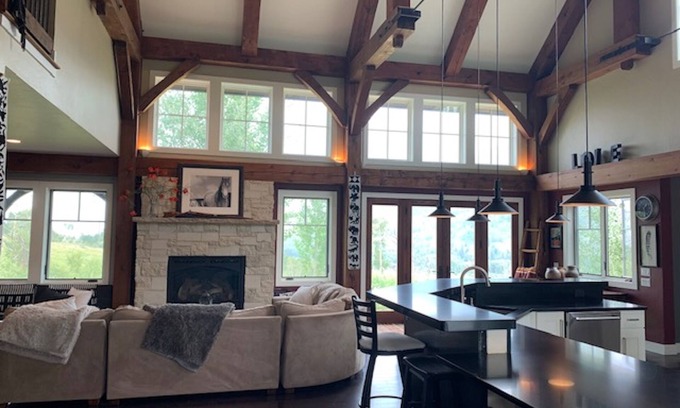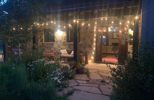 Apache Ranch was custom built and is a true timber-peg house with 26 ft. vaulted ceilings, open floor plan and 3600 sq. ft. of spacious living area. The house is wall to wall hardwood floors and floor to ceiling windows. The style is mountain/modern which features all contemporary appliances and furnishings. The grand kitchen is great for entertaining. It has large countertops that seat five and adjacent seating area that seats 14 around a custom table. The great room has vaulted ceilings and a large gas limestone fireplace for warmth and ambience. The house has 3 bedrooms and 3.5 baths. The bedrooms have high vaulted ceilings, many windows for light and views and hardwood floors. The bathrooms are custom tiled floors, countertops and showers. The master suite has French doors that are a private access to the wrap around porch, patio and fire pit, and it has a private bath with a jetted jacuzzi tub. There is a wrap around, covered, stone porch and a flagstone patio with a large gas fire pit and a gas grill….great for outside entertaining. There are also hammocks that swing from the porch in the summer for relaxation and just taking in the sun, stars and mountain views.