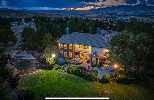 Welcome to a relaxing retreat in this custom home, with over 4,000 square feet, in a luxurious Reno neighborhood. The home offers an expansive outdoor entertainment area, featuring a sizable dining table, seating area, fire pit, hot tub, basketball hoop, and large yard. Inside, you will find a substantial great room, multiple dining areas for gatherings, library/office, game room with a pool table, ping pong, shuffleboard and bar, three bedrooms and bathrooms, and another loft. The home easily accommodates 11+ guests, or more, with ample living/sleeping/dining/and entertainment spaces. Right outside the backyard oasis is direct access to miles of trails with breathtaking views! It is located only 10 minutes to downtown Reno, a quick 30 minutes to Truckee/Northstar, and an hour to South Lake Tahoe. Come and enjoy this luxurious estate!