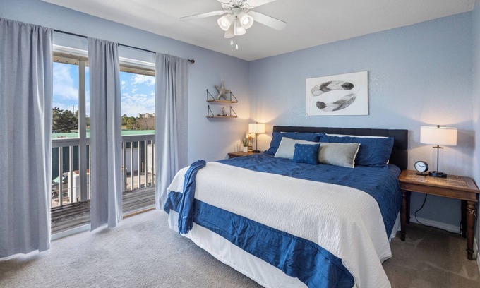 Kate's Place offers 2 nice sized bedrooms and 2 bathrooms with tub/shower combos and a half bath for added convenience. The primary bedroom has a King sized bed with an en-suite bathroom. It also has a small balcony if you would like to enjoy a cup of coffee in the morning and try to catch a glimpse of the Blue Angels flying overhead on a practice day. The guest bedroom has a full sized bed with a fun twin bunk overhead, to comfortably sleep 3 guests. There is also a sleeper sofa in the family area to accommodate 2 additional guests. Kate's Place comfortably and safely sleeps a maximum occupancy of 6, including all children and all adults. The owners have thoughtfully provided safety gates at the tops of the stairwells to ensure little ones and pets are only where you want them to be. Both bedrooms have room for a Pack & Play and PKRM rents these out as a guest service.