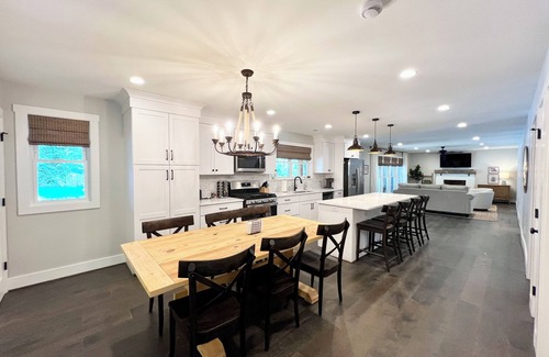 The door to the house has a keypad lock and a generated code will be provided at check in. The driveway is gravel and has space for 4 cars. There is one step to access the house. There are approximately 10 steps from the back porch to the patio, 15 steps from the patio to the boat house, and 10 steps from the boat house to the dock.