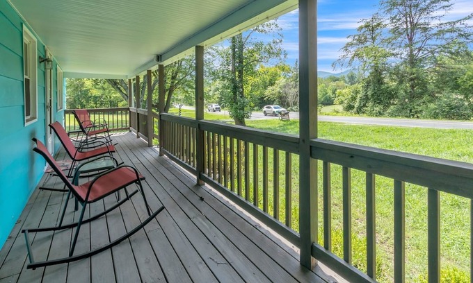 The property offers a large country front porch with stunning mountain views from every angle. We provide all of the amenities of home, and then some! Enjoy the convenience of modern amenities such as a washer and dryer, a large 55" flat-screen TV in the living room, and 36" flat-screen TVs in each bedroom, complete with streaming services like Netflix, Disney+, and Hulu.