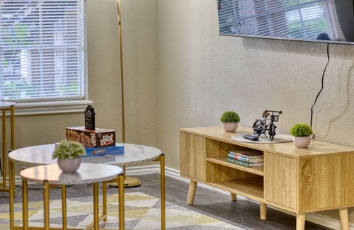 This lovely unit has everything you need for your short and long stays. It is located within minutes (driving or walking!) of some of McAllen's top restaurants, bars, and shopping centers. It is also within walking distance of Gold's gym, major bank branches and other small businesses. Exterior cameras for guests’ security. This private 1 bed, 1 bath apartment also features a 65' in. Smart TV, Queen-Sized Bed, a Memory Foam Futon, fully equipped kitchen, dinning area, toiletries, and beverage station with free coffee and condiments!