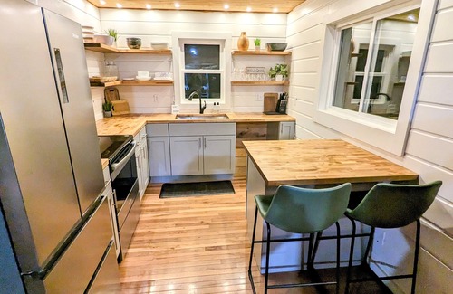 Enjoy the large sunroom with screened windows; fresh air and sunshine abound! Features include fully stocked kitchen, dining, 2 bathrooms, & wrap around deck. For those crisp mornings, enjoy french-pressed coffee or your favorite tea at the coffee bar.