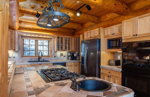 Welcome to Luminary Log Chalet! This 3-bed, 3-bath log home is the perfect mountain retreat, offering rustic elegance with modern comforts. Featuring exposed timbers, vaulted ceilings, and a wraparound deck with a private hot tub, the home provides stunning mountain views and a cozy ambiance. Perfect for families and groups, this chalet combines outdoor adventure with indoor entertainment, including a game room with air hockey, ping pong, and shuffleboard. For larger gatherings, the Timber's Edge Estate (5-BR) & Lakeshore Lodge (6-BR) are just a 2-minute walk away in the same neighborhood.
