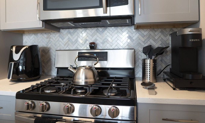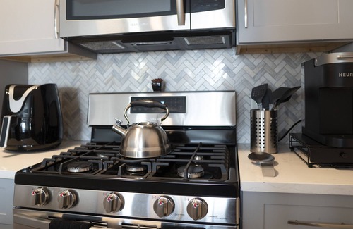 The Kitchen is fully stocked with everything you may need. Complimentary breakfast and coffee is provided along with wine and champagne.