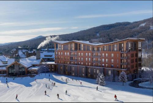 New luxury ski in ski out 4 bedroom at One At Spruce Peak By Stowe Mountain Rentals is located in Stowe.