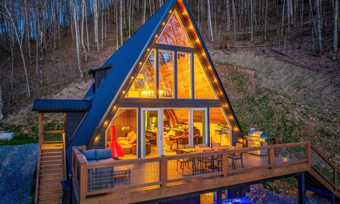 Escape to our modern A-Frame cabin nestled on 6 acres nearly 4000 feet high in the serene mountains of western North Carolina. Located between Maggie Valley and Cherokee, and just 55 minutes from downtown Asheville, our 4-bedroom retreat offers breathtaking golden-hour sunset views of the Smoky Mountains. Whether you're seeking adventure or relaxation, this luxurious cabin is the perfect base camp for both.