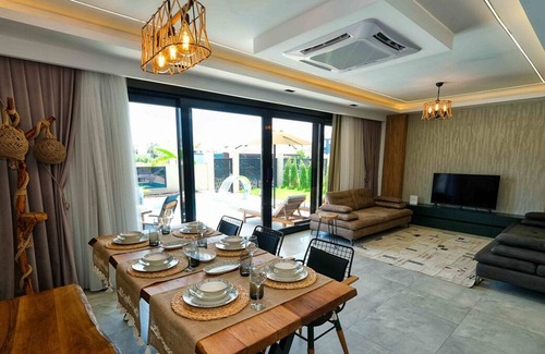 New luxury Villas with 5 min walk from blue flag seaside is located in Kaleici. New luxury Villas with 5 min walk from blue flag seaside provides accommodation, featuring Kitchen, Air Conditioner, Pool, among other amenities. This House features Kitchen, Air Conditioner, Pool, to make your stay a comfortable one.