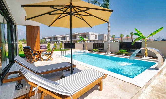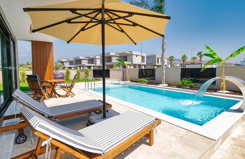 Brand new ultra luxury villas with private pool and private garden, BBQ area, terrace, 4 fully furbished bedrooms and kitchen, living room. Everything for your comfort is ready to use. Located in Çamyuva, lovely holiday village, which is between blue flag seaside and green forrest.