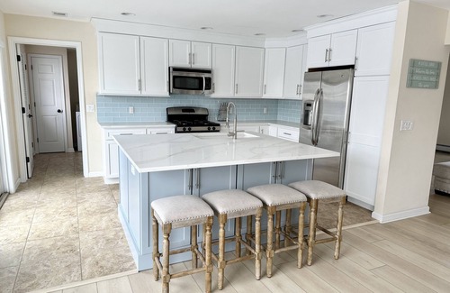 New Luxury waterfront home in Lavallette Proper for family rentals only. Come enjoy pure tranquility looking out at the water in every room of this home. You will soak up the sun while relaxing on the expansive deck, which you can fish/crab/kayak right off the dock! The entire house was completely remodeled this year. All brand new furniture as well. Enjoy the spacious, open concept kitchen and living room with your guests! Our home is very centrally located--just a short walk away from many restaurants, park, playground, bay beach, ice cream parlor, coffee shop and boutique stores. Also, the beach is just a quick 5 minute walk. Sleeps 12!