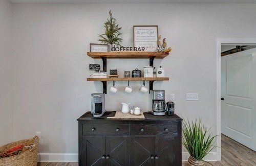 Fully stocked kitchen and loaded coffee bar with coffee, tea, creamer, sweetener, and hot chocolate. (Single cup Keurig and 14 cup drip)