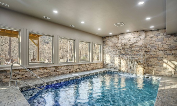 BRAND NEW CONSTRUCTION. Nestled in Massanutten Resort is our newly constructed, cozy mountain home. Splash in our 12'x20' private, INDOOR HEATED SALTWATER POOL with waterfall. Sip on coffee and view the ski slopes on our spacious deck. Enjoy your favorite movies in our theater room while relaxing in stadium-style reclining seating. Breathe in the fresh mountain air and soak in the hot tub, toss corn hole, and share stories around the fire pit. Sleeps 14