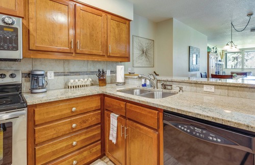 CONDO FEATURES: Bright interior, Smart TV, wood-burning fireplace (compressed logs not provided), dining table, walk-in shower, private patio, outdoor dining, gas grill