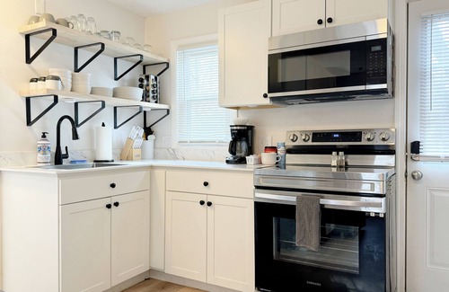 The apartment was completely renovated, featuring a fully equipped kitchen, a stylish new bathroom, and modern fixtures throughout. The spacious bedroom includes a king-size memory foam mattress, ample storage, and a Roku TV. The second bedroom offers a versatile twin-size memory foam daybed with a trundle, a Roku TV, and additional storage. Enjoy a private entrance and the peaceful setting located in the rear of the building with nothing above.This offers an easy, move-in ready option with everything you need in a great location. Whether you’re relocating for work, school, or just looking for a cozy home, this apartment offers a perfect blend of modern comfort and historic charm.
