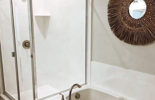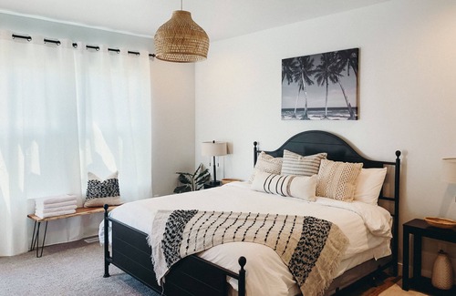 Our new townhome offers modern boho + island-style vibes sure to make your stay here feel homey & comfortable. By adding bits of our paradise home of Hawaii to the decor & lighting, you will feel relaxed when returning here after a long day of exploring. Just opt out of the main lighting & turn on the pendant lights instead. This mood lighting makes all the difference in this homey stay.