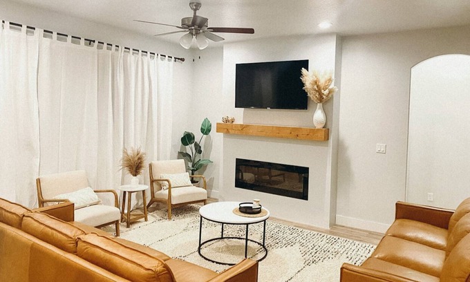 New Modern Boho Lakefront Townhome Near UVU & BYU is located in Vineyard. New Modern Boho Lakefront Townhome Near UVU & BYU provides accommodation, featuring Security/Safety, Child Friendly, among other amenities. This House features Security/Safety, Child Friendly, to make your stay a comfortable one.
