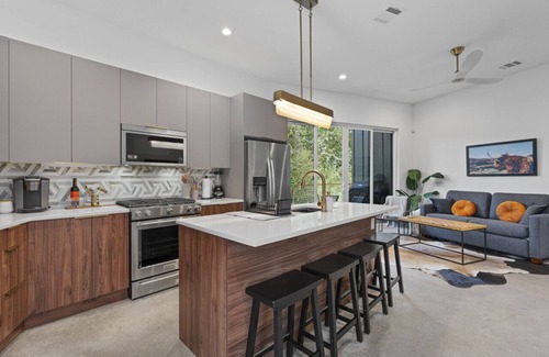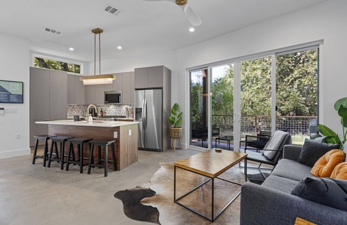 Discover the perfect getaway in this brand new 2-bedroom, 2.5-bathroom home, located in the heart of Austin`s lively East Side! With a sleek design and all the modern comforts, this home comfortably accommodates up to 5 guests, making it ideal for families, couples or small groups.