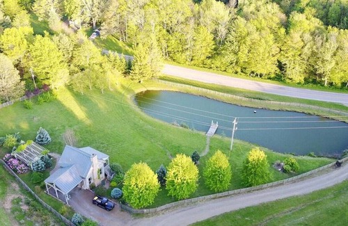 This retreat is perfect for two. Only one bed in this cozy cabin, but not to worry, you'll have plenty of room. The living room boasts a 55" television, complete with Netflix and Prime and WiFi. But don't spend all your time on the sofa, our guest house includes a pond and lots of outdoor space. You'll enjoy the tranquility of the area. Enjoy our pergola, firepit, outdoor seating and local deer that visit often.