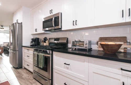 Welcome to the perfect home for your visit to the Tempe/Scottsdale/Phoenix area! The open floor plan is perfect for larger groups, with a large living room, kitchen, and dining area. The dining room table has seats for 10 as well as 4 stools at the kitchen island/bar. Just off the living room is a den/office, complete with a 32” Apple monitor, keyboard, and printer that you can plug into! Close the barn doors for additional privacy to work in peace. The home decor is mid century modern meets traditional Haitian art to create an environment that is both sophisticated and warm!