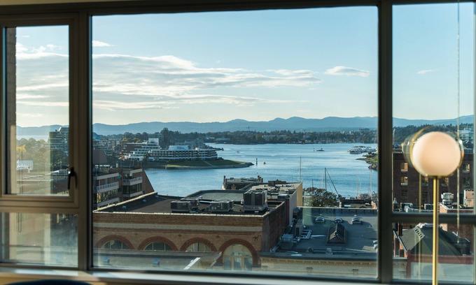 Guests entering this space will immediately notice the condo's stylish modern design, specially curated to foster a sophisticated, yet welcoming atmosphere. The open concept living space allows for an abundance of natural light to pour through the suite's wall-to-wall that, likewise, offer guests an unparalleled view of Victoria's skyline including the inner harbour and distant Olympic mountains.