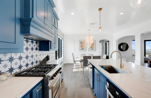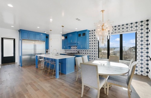 - ☞ Dining Area: Gather for meals in the dining area, providing seating for 10 people (6 at dining table and 4 barstools).