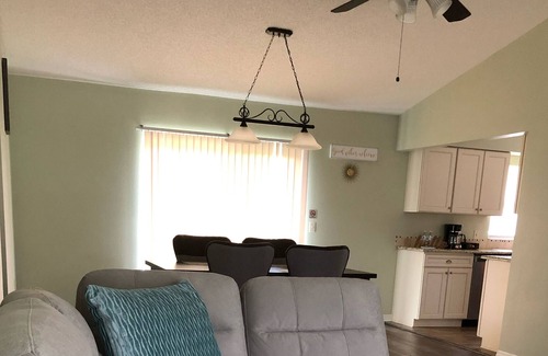 Our home has 3 bedrooms/2 bathrooms, including 1 large Master Suite and plenty of closet space. Plenty of windows to enjoy the sunshine state. We have a spacious living room with a large smart TV so you can continue to enjoy your favorite shows. All the furnishings have been selected with comfort and convenience in mind. Part of the couch has storage with games in store for you to enjoy with the family.