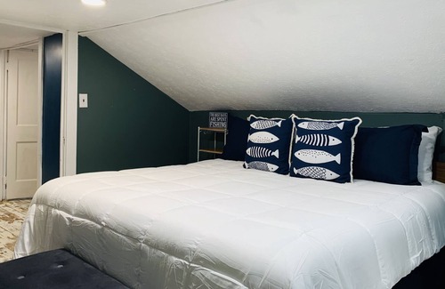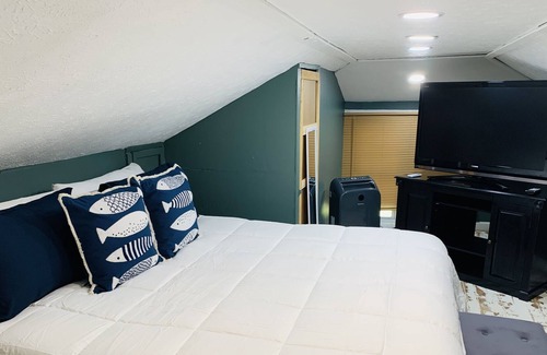 The upper level was originally a loft. We have divided it to give additional privacy and make bedrooms. Now it's a King bedroom, Queen bedroom and an open area with Queen, twin trundle and futon.