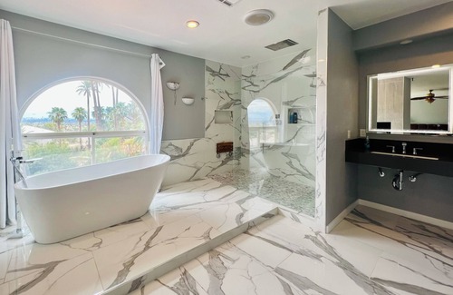 Experience the ULTIMATE RESORT-STYLE retreat! Zoom down WATERSLIDE, relax by WATERFALLS, and unwind at the SWIM-UP BAR! Cozy fire pit chats, spa relaxation, and lush palm trees await. Panoramic city views and city lights! Show off at BASKETBALL, TENNIS, and PUTTING GREEN by the TIKI BAR. Enjoy the karaoke STAGE and POOL game! PRIME MOUNTAIN BASE LOCATION offers peace, serenity, and an ideal setting for a family bonding retreat.