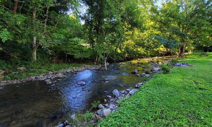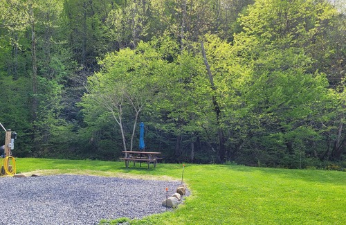 Comfort and Convenience: Our site includes 30-amp electrical service and fresh mountain water, ensuring a comfortable stay with all the essentials. Settle in at the picnic table for a meal or simply relax and soak in the picturesque creek views. The site features a firepit, perfect for roasting marshmallows and sharing stories under the stars. The soothing sounds of the creek will lull you into a state of tranquility, creating the perfect ambiance for relaxation.