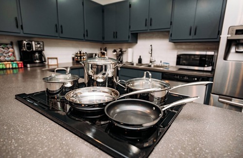 Enjoy cooking in a kitchen that offers all the quality stainless steel appliances, utensils and cookware needed to feel right at home. Think: all the pots & pans, serving trays, and bakeware you need to whip up a meal to remember.