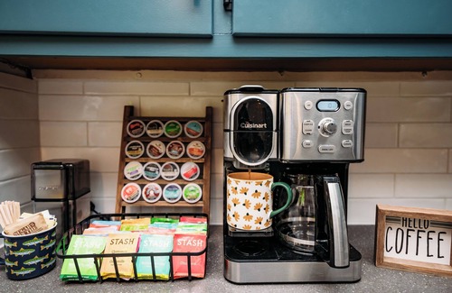We also love coffee & tea, and know you might too! Enjoy a thoughtfully designed caffeine station -- complete with a brand new two-in-one drip coffee/Keurig machine, as well as a huge selection of Stash teas, to start your morning in the mountains off right.