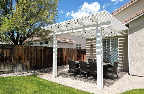 Start your day with an espresso from the provided espresso maker while enjoying the breathtaking views of the Sierra Nevada Mountains from the private patio. Additionally, our spacious backyard boasts a pergola and a large outdoor table that seats 8, perfect for hosting gatherings and enjoying the outdoors.
