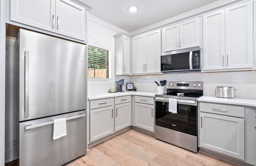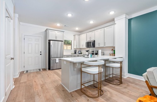 Welcome to Rooted In Auburn, a brand new construction 2BR/2.5BA townhome located 1.5 miles from Auburn's campus off of Wire Rd. and has Tiger Transit available! It sleeps 5 people comfortably and is pet-friendly for up to 2 small dogs with a small fenced in backyard. The driveway is level to the townhome entrance with no steps. With 1400 square feet of living space, you and your group will be able to relax in beautiful surroundings with quartz countertops, stainless steel appliances, and luxury vinyl plank flooring during your stay.