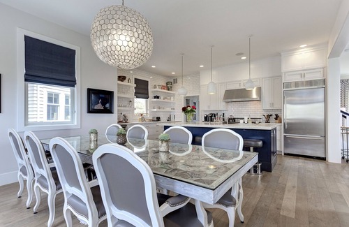 The open-concept first floor is ideal for bringing people together. Each space builds upon the next until they crescendo with the gorgeous coastal views from the heated porch. Upon entering the home, you are immediately greeted and warmed by the fireside lounge. Then, grab a cue and hop in for a competitive game of billiards in the living room. Community space abounds as it spills out into the fully-equipped chef’s kitchen. Belly up to the bar to pour cereal or a drink and wander out to enjoy the cozy oceanfront porch. Unique touches like a vintage record collection, original artwork and mix of designer and vintage decor make this home truly unique.