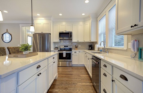 Just a single step inside the door of Ursa Major and you can kick off your shoes and drop your sandy bags off in the spacious mudroom. You will be blown away by the oversized kitchen, fully-equipped with everything you need to whip up your favorite meal or snack. Gather around the kitchen island or sit at the dining table for dinner or family game night.