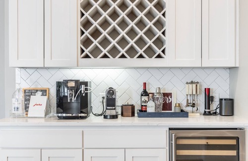Step through one of the 12-foot-wide sliding glass doors and watch the sunset from the patio while the built-in BBQ cooks dinner overlooking soft synthetic grass and a private heated spa and pool. An open-concept interior means space galore, while the master bathroom has a big double-head rain shower and twin vanity. The kitchen is fully stocked and features double ovens, an automated Jura espresso/coffee machine, and a huge kitchen island. Relax and enjoy the large open-concept living area or work hard on the Peloton bike; either way, make yourself at home.