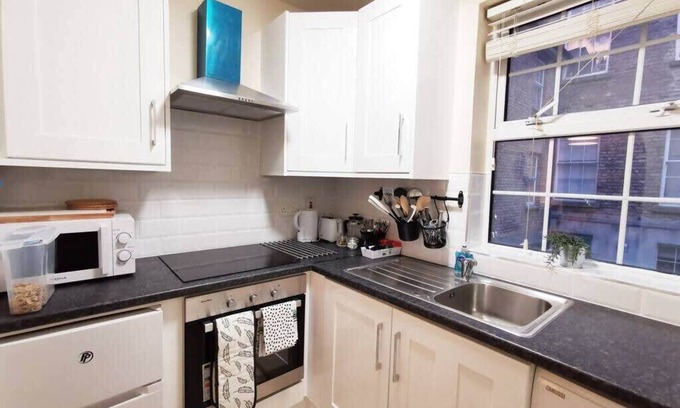VERY SPACIOUS Newly refurbished 3 bed apartment located RIGHT in CITY CENTRE - GREAT SPOT WITH SHOPS SUPERMARKETS RESTAURANTS AND PUBS ALL WITHIN A MINUTES WALK. Apartment has TV and reliable High Speed internet/WiFi AND central heating. Fully equipped kitchen for cooking and dining. TWO DOUBLE BEDROOMS AND A TWIN BEDROOM AND DESK IN SEPERATE AREA - LIVINGROOM WITH LARGE DOUBLE SOFABED AND DINING TABLE FOR 6. Your perfect spot to explore the city/ to stay in AND COOK IN THE FULLY EQUIPPED KITCHEN.