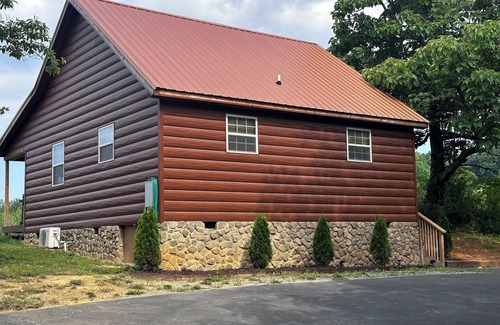 Kick back and relax in this peaceful, stylish cabin which is located in the heart of Jonesborough, the oldest town in Tennessee. Sit in the rockers on the covered porch of this cabin and enjoy the surrounding views and sounds of nature. Sunsets are especially beautiful. You will lose sense of time and the hectic world around you. Many good restaurants are close by and there is plenty of nature to explore in the area.