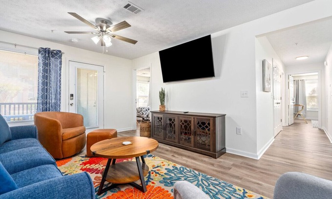 Escape to Auburn and stay in our newly renovated, ground floor 4BR/4BA condo. No stairs or hassle, just a spacious and fully equipped home away from home. Our convenient location near the AU Performing Arts Center, Museum, stadium and restaurants makes it easy to explore the city. The open floor plan and spacious bedrooms each have their own private bathroom, offering plenty of space for your group. Sleep on brand new Nectar and Memory foam mattresses for extra comfort and a plush rest! With modern and cozy furnishings, this ground floor unit is perfect for families or groups of friends looking for a comfortable and convenient stay.
