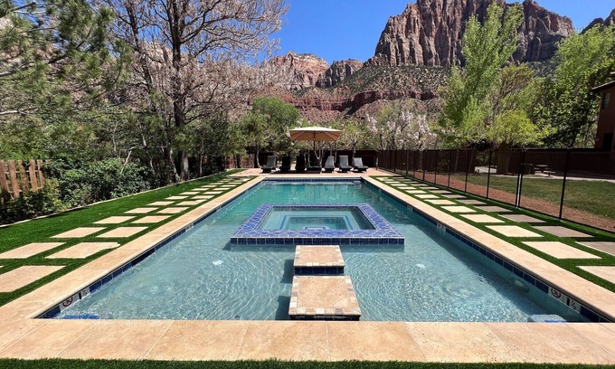 Best-rates for the Zion National Park South Entrance villa starts from $1,292 per night with includes Air Conditioner, Fireplace/Heating, Child Friendly, Internet, Parking, Private Pool, Wellness Facilities, TV, Balcony/Terrace, Bedding/Linens, Entertainment, Barbecue/Outdoor Cooking, Kitchen, Laundry, Pool, Sports/Activities, Hot Tub StayAndPlay offers fully equipped golf villas, golf hotels, golf resorts, luxury golf cabins, and exclusive golf retreats, making it easier than ever to find your perfect golf escape — ideal for families, peaceful getaways, or pet-friendly retreats with the whole crew.