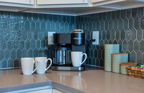 Our thoughtfully designed kitchen is fully equipped with modern appliances, sleek countertops, and all the essentials for effortless meal preparation. Coffee enthusiasts can start their day with a fresh brew from the Keurig machine. Whether you`re making a quick breakfast or crafting a gourmet feast, this kitchen has everything you need.Gather around the spacious dining table that seats 10, with additional chairs available on the deck for extra seating. You can also dine at the kitchen peninsula—perfect for creating unforgettable moments with family and friends.