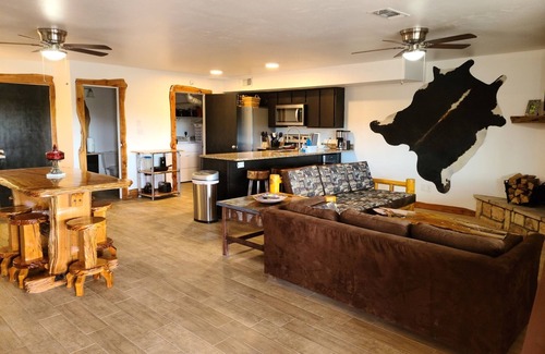 The feature that our guest enjoy most is a large covered deck with rocking chairs, hammocks and tables, to sit and relax and take in the magnificent views of the Sacramento Mountains and Lincoln National forest.