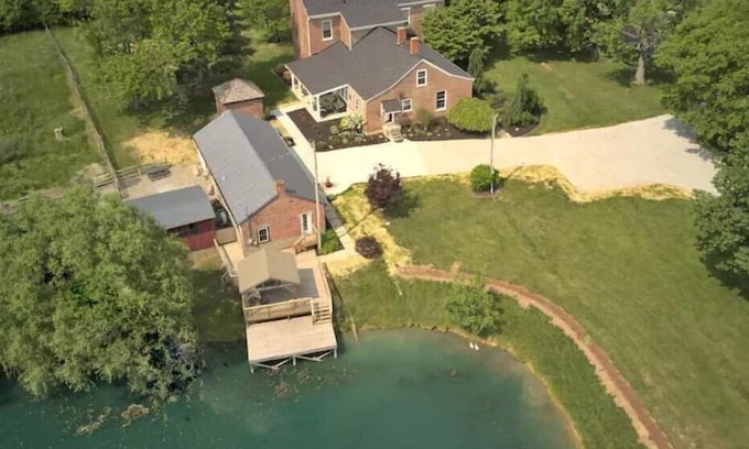 NEW to VRBO, this popular 5 Star Super Host property is central to the areas most popular attractions, the CVG airport campus, and the famous Kentucky bluegrass bourbon trail. Enjoy this unique farmhouse on five private acres, a comfortable pet friendly vacation home to relax with family and friends. The 1832 Greek revival home is a true treasure, listed on the National Register of Historical Places. This award-winning property has had extensive renovations preserving its historical charm while adding premium modern amenities to make your stay most comfortable. Business travelers will adore the many spacious workplaces and its convenience to the NKY Airport campus. Pet families will delight with the private one acre fenced dog park.