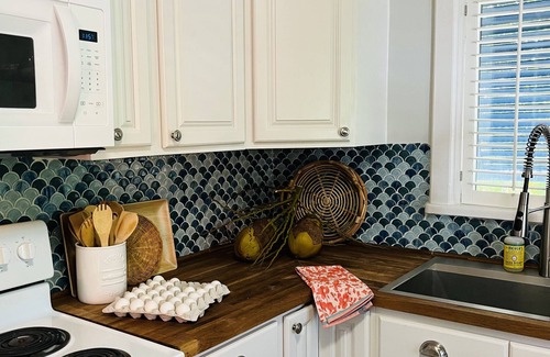 Top of the line king bed in primary bedroom, en suite bathroom. Memory foam sleeper sofa bed in living room, perfect for a family of four. Two mini split AC systems for your comfort and second bathroom with tub/shower combo.