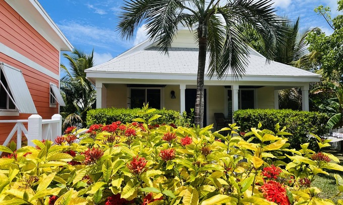 JUST LISTED ON VRBO is our renovated, furnished and decorated luxury Bahamian cottage. Conveniently located with a 4 minute stroll to a most beautiful pristine beach. Lush landscaped, fenced in yard with hammock, front porch with outdoor dining, grill and outdoor shower. We are located in Western View across from the park.