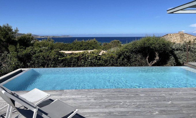 Superb sea view from all living rooms, fully air conditioned, fully equipped, heated swimming pool.