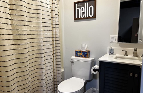 Down the hall are two bedrooms, the first bedroom has a queen size bed (sleeps 2), the second has a twin xl, and a twin with a trundle (sleeps 3). On the main floor you will also find a full bath with a bathtub/shower combo, the laundry room and access to the basement. The basement is partially finished, the owners will be adding additional items for guest as they work on completing it.